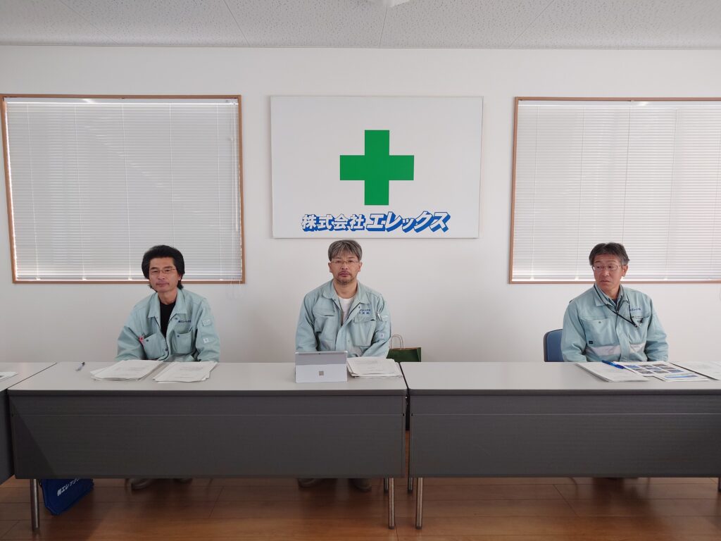 今年度第3回目となる、エレックス協力会社安全協議会全体会議を行いました。協力会社全社から安全推進委員が集まり、安全作業や施工品質に関する情報周知、その他最新情報の共有を図り、作業現場へ反映するようにしています。