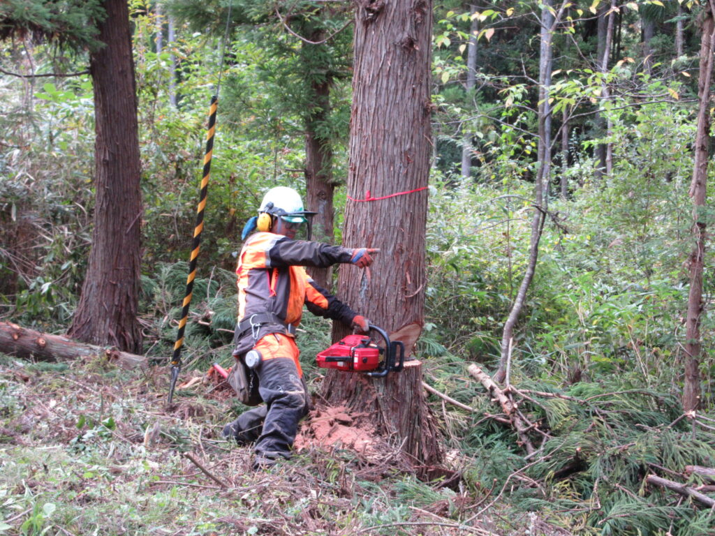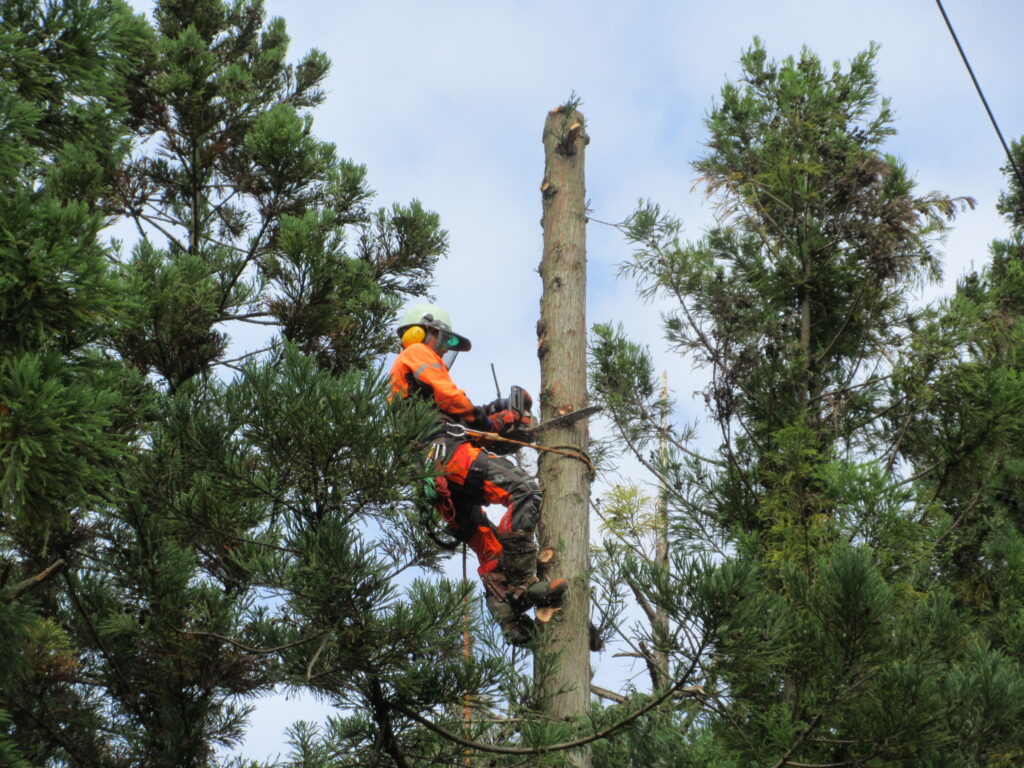 10月9日(水)から11日(金)までの3日間の日程で、奥州市前沢においてエレックス伐採交流会を実施しました。作業内容に応じて、安全かつ正確に作業を進める手順・ルールを再確認する場としています。基本は高所作業車を使用するのですが、高所作業車が使用できない場合は直接木に登って作業する事もあります。東北電力ネットワーク(株)岩手支社・電力センターから視察にお越し頂き、作業方法等について意見交換もさせて頂きました。